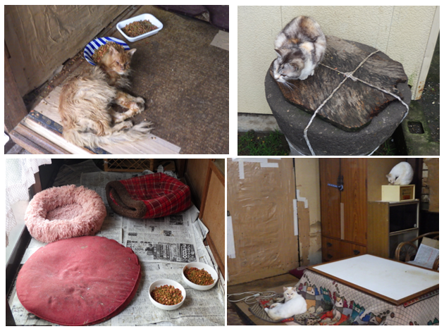 - 当初、トイレを設置していなかったが、新たに3つトイレを置くようにした。トイレを設置したことで、臭いも抑えられ、室内もきれいな状態となった。健康状態が悪そうな猫は見受けられなかった。