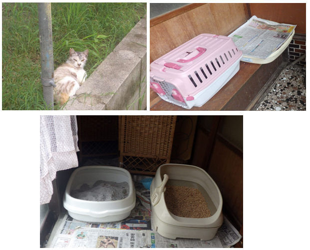 - 現地確認時、トイレの設置をしていなかった為、トイレの設置。給餌場所を室内に変え、飼い猫以外には餌をあげないこと、飼い猫については室内飼育を指導した。