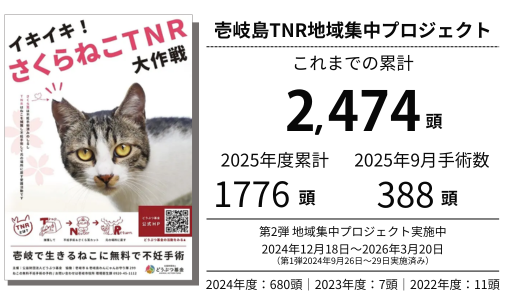 どうぶつ基金は壱岐島TNR地域集中プロジェクト「イキイキ!さくらねこTNR大作戦」