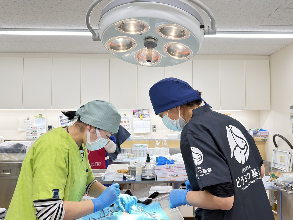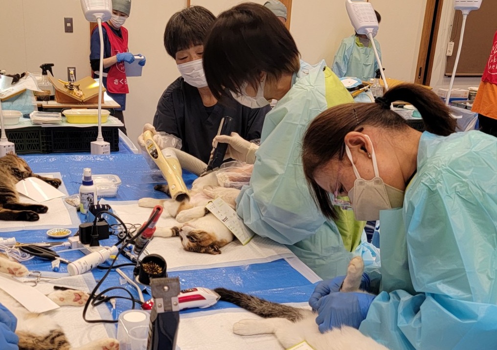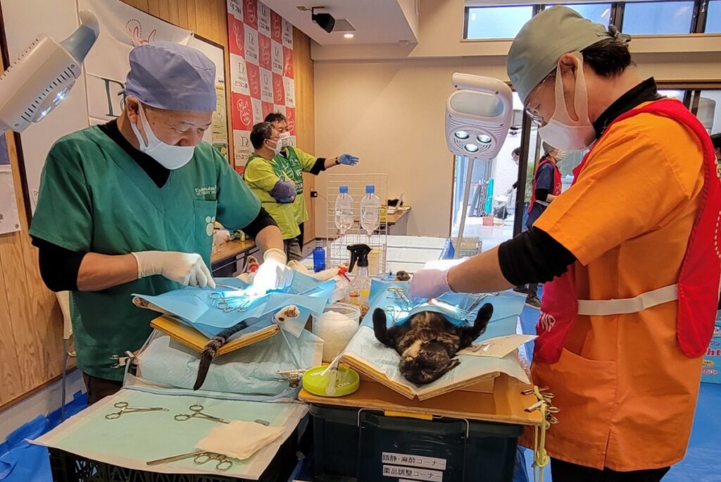 10月22日、三重県・地域住民・ボランティア・関係市町職員と協働して三重県動物愛護センター(あすまいる)にて110頭の不妊手術が行われました。