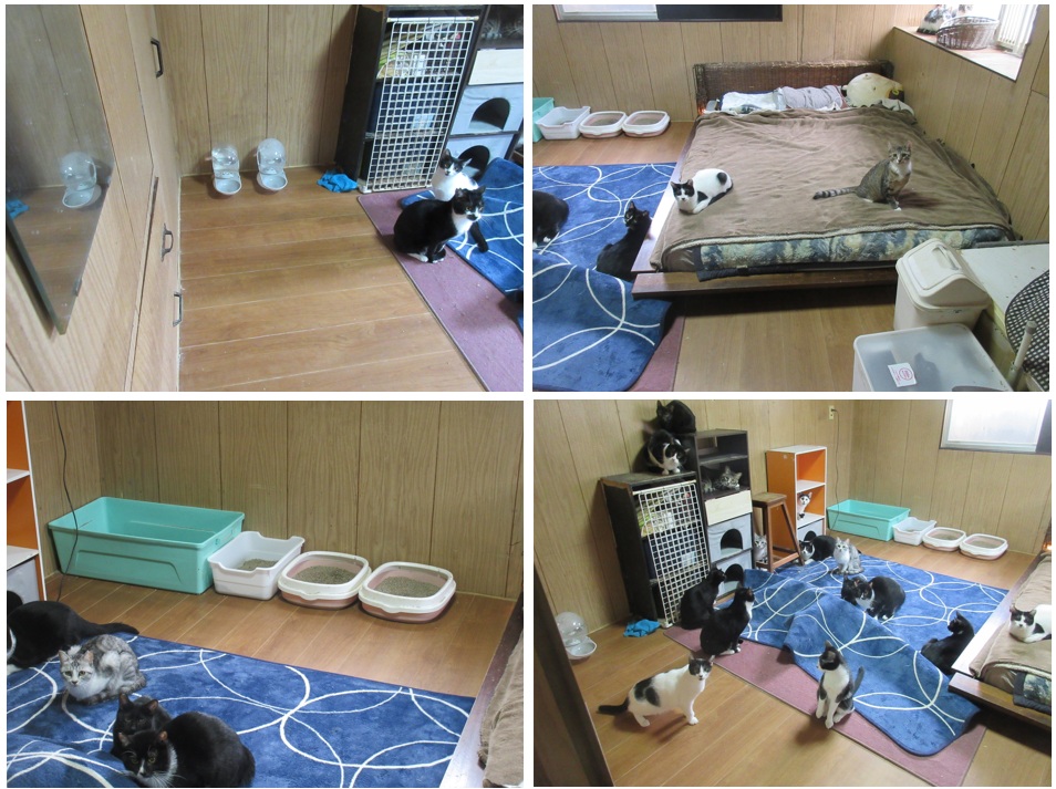 6. チケットにより全頭の手術が完了。不衛生だった部屋の掃除、片付け、ケージの撤去が行われたことで飼養環境が改善し、活動スペースが広がったことで猫のストレスが軽減され、のびのびと過ごしている。