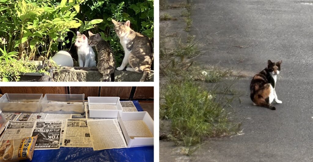 3. 5頭の手術が完了し、現場の猫は全頭手術済みとなった。1回目の支援時に大きなトイレが6個設置されており、悪臭や汚れなどの問題もなく、猫たちは手術前と同じく穏やかに過ごしている。