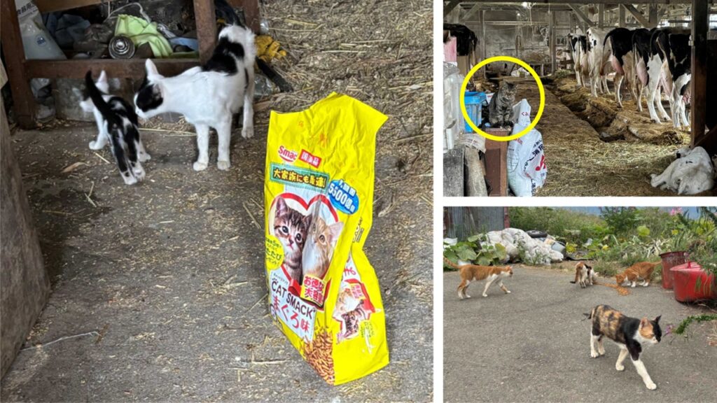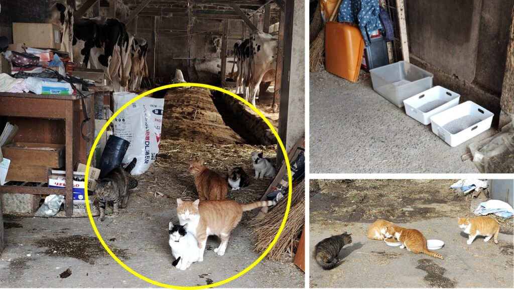 2. 15年前まで猫は常に1~3頭で増えることはなかったが、 15年前から牛舎に捨てられた猫や野良猫が住み着くようになり、繁殖して増えていった。