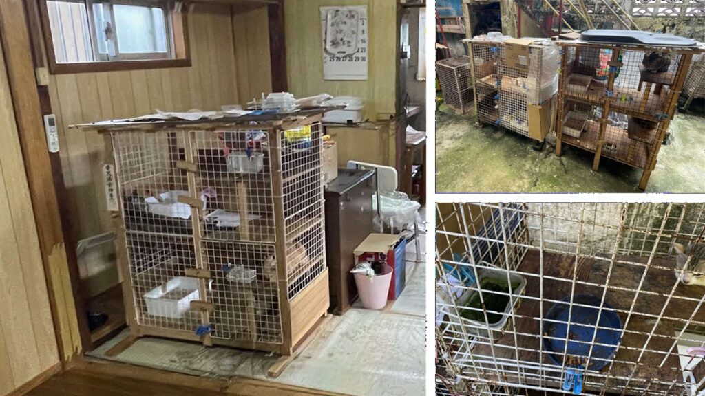 - 里親を探すなどして飼育数を減らす努力をしていたが追いつかず、飼い始めて9年ほどで多頭飼育状態に陥った。