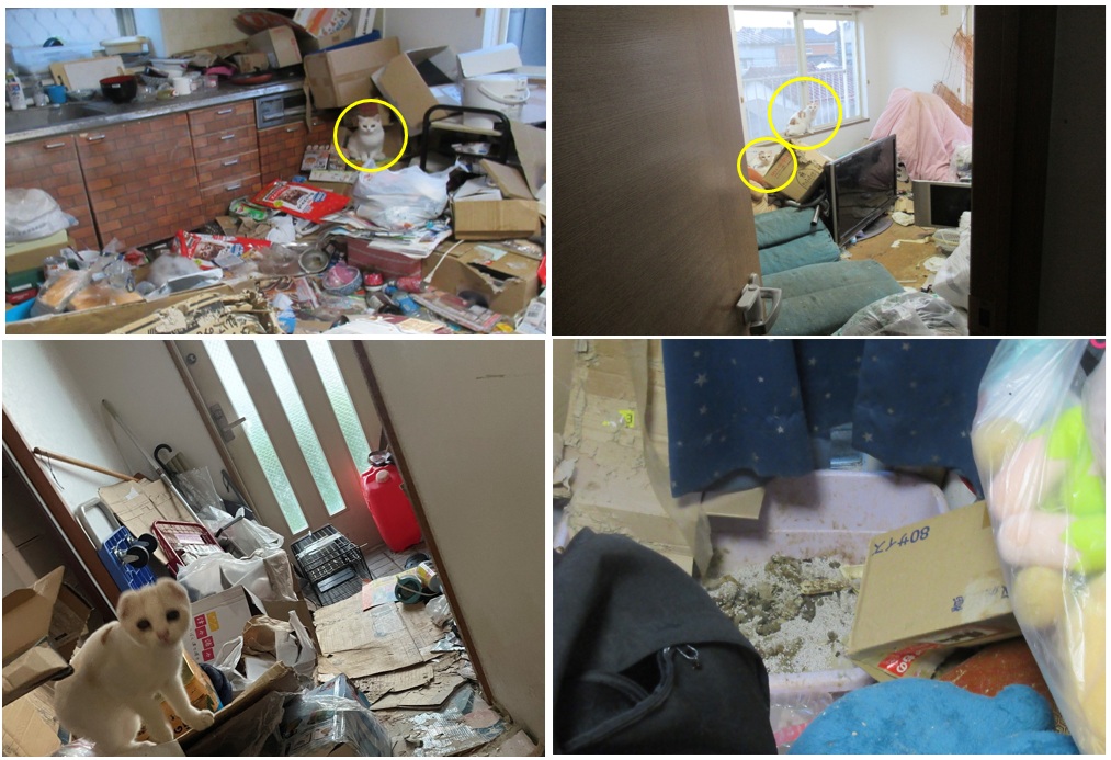 - 環境改善について片付け等行うよう指導に努めたが、当事者の体調が芳しくなく改善されていない状況。引き続き、飼養環境を定期的に確認して状況把握および改善に努める。