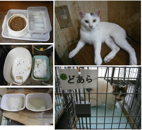 - 猫は人懐こく、極端に痩せていたり毛並みが悪いなど明らかに健康状態の悪い猫はいないと思われたが、高齢のオス2頭については、手術時に栄養失調がみられるとのことで点滴が行われた。