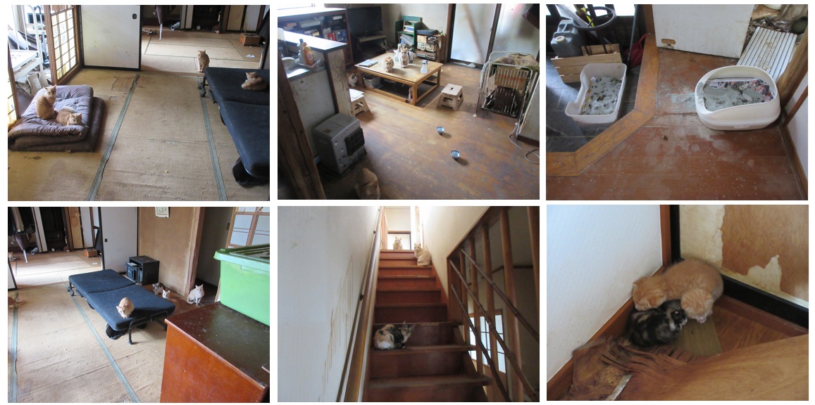 9. 堆積した糞や長年放置されていた粗大ゴミ等については、センター職員の協力のもとすべて廃棄。定期的な清掃が習慣となったものの、畳や襖に染み付いた悪臭は除去できていない。現在、各部屋にトイレを設置できるよう数を増やしているところである。