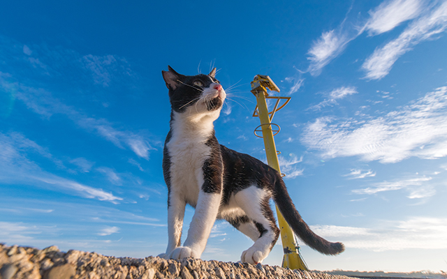 2024年9月に漁港にやってきた新入り猫のまーくん。